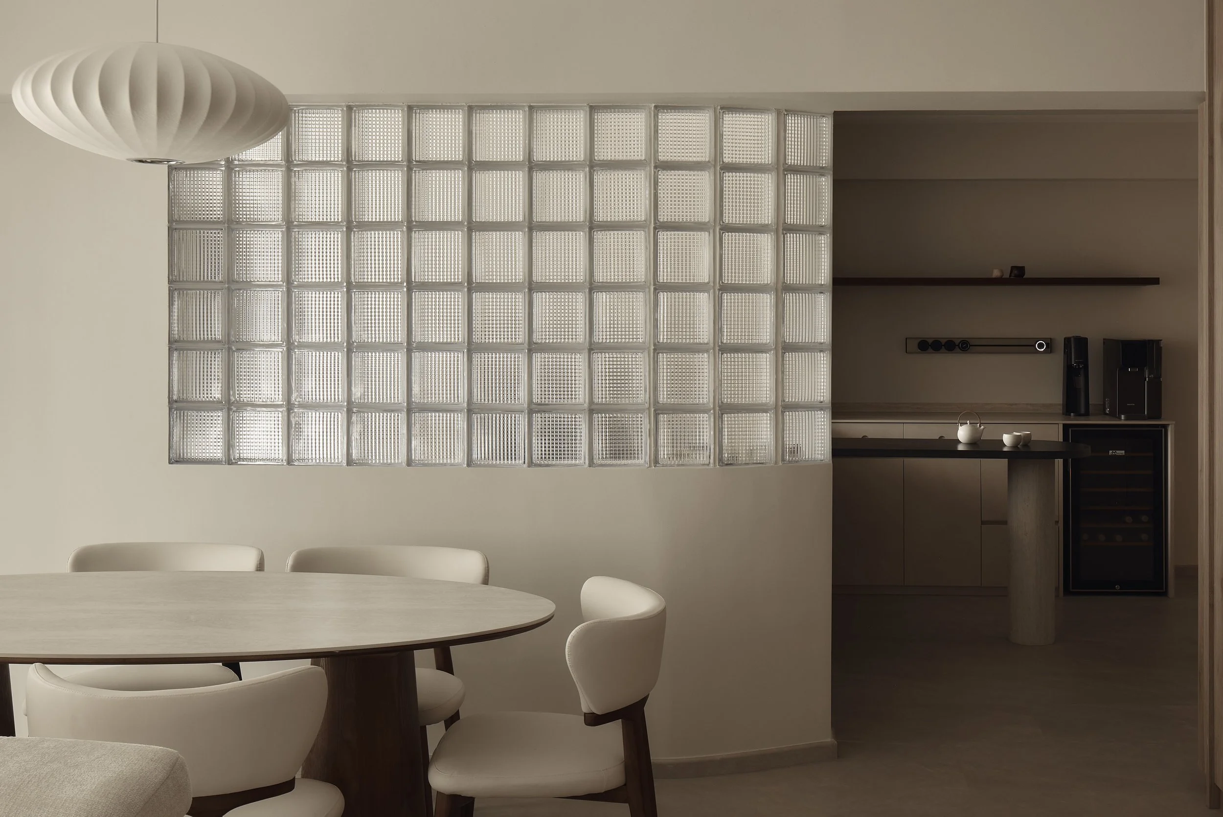 The pantry bar area is visible once entering the home, giving it the highlight alongside with the study room door & stretch ceiling. A simple curve bar counter to bring softness to the space.